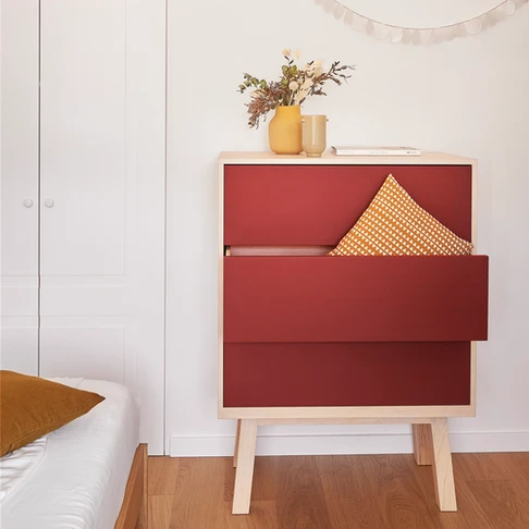 Simply send us your preferred color reference from a popular color chart like RAL, PANTONE, or Farrow & Ball. You can also send us a 10x10 cm fabric or wood sample, or a photo, and we’ll create a custom color match for you. You’ll receive a wood sample of the color match for approval before we apply the final finish to your furniture.